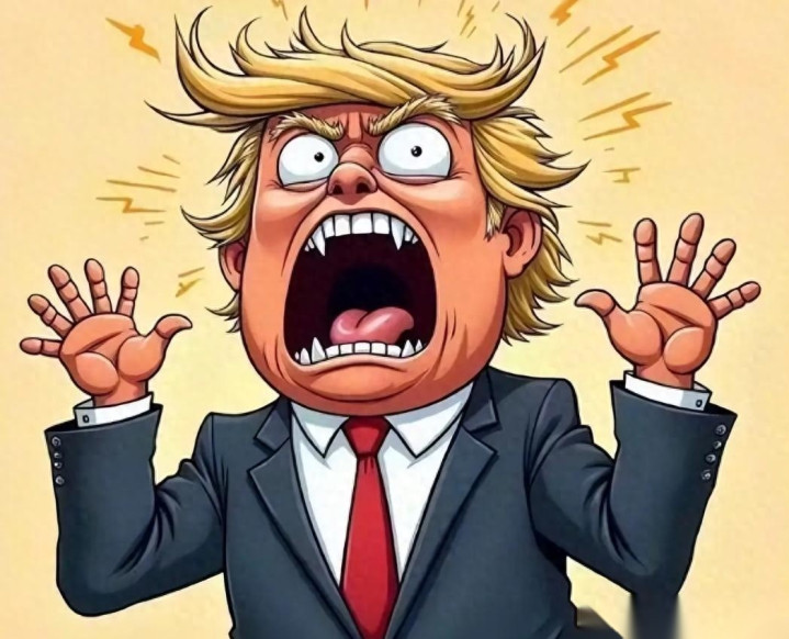 特朗普卡通形象 / 震怒嘶吼、双手伸开的特朗普卡通东谈主物