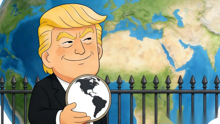 特朗普卡通形象 / 抱着好意思洲舆图的特朗普卡通东谈主物