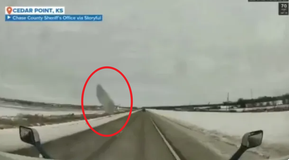 2025 年,在堪萨斯州一场冬季摇风雪中,又名卡车司机的行车记录仪拍下了一大块冰砸碎他挡风玻璃的画面。 着手:福克斯天气