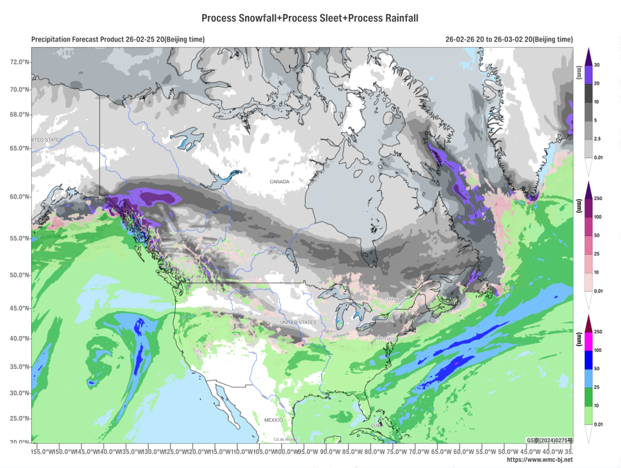 同期,风力将达到蒲福风级5至6级,阵风可达7至9级。加拿大西部沿海高海拔地区、加拿大东南部以及好意思国东北部将出现中到大雪,局部地区可能出现摇风雪或强摇风雪。瞻望累计降水量为10至20毫米,部分地区将晋升35毫米。