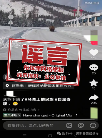 近日,有网民在外交平台发布视频,宣称“新疆喀纳斯出现棕熊”“阿勒泰际遇熊大了”。经关联部门核查阐发,视频为AI生成,并非真正拍摄画面,幸运彩app手机版属地未发生此类“熊出没”事件,该音问属于作假假话信息。